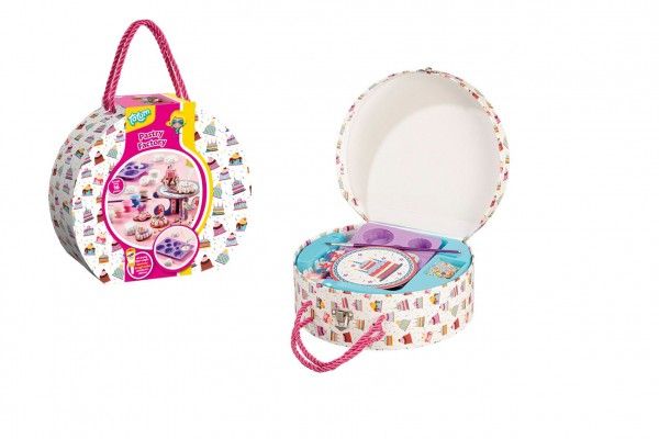 • Sada na výrobu moučníků “Továrna na moučníky” hmota s doplňky v kartonovém kufříku 21,5×19,5x7cm